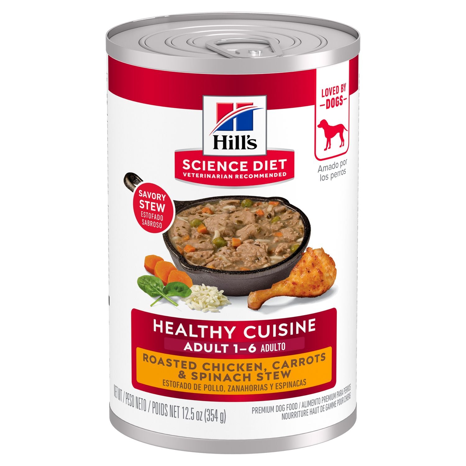 Hill's Science Diet Adult Healthy Cuisine dog food combines the delicious flavors of braised beef and tender vegetables in a succulent stew - canned dog food with the perfect balance of taste and nutrition for your dog.